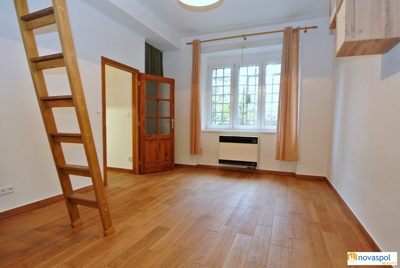 Jedná se o nezařízený byt v přízemí cihlového domu (zamřížovaná okna do zahrady). Kuchyňská linka s lednicí, eletrickou dvouplotýnkou, myčka, pračka. Koupelna se sprchou, WC samostatně. V pokoji vestavěné patro na spaní a vestavěná skříň v předsíni. Podlahy plovoucí, dlažba. Topení plynové WAW. Podl...