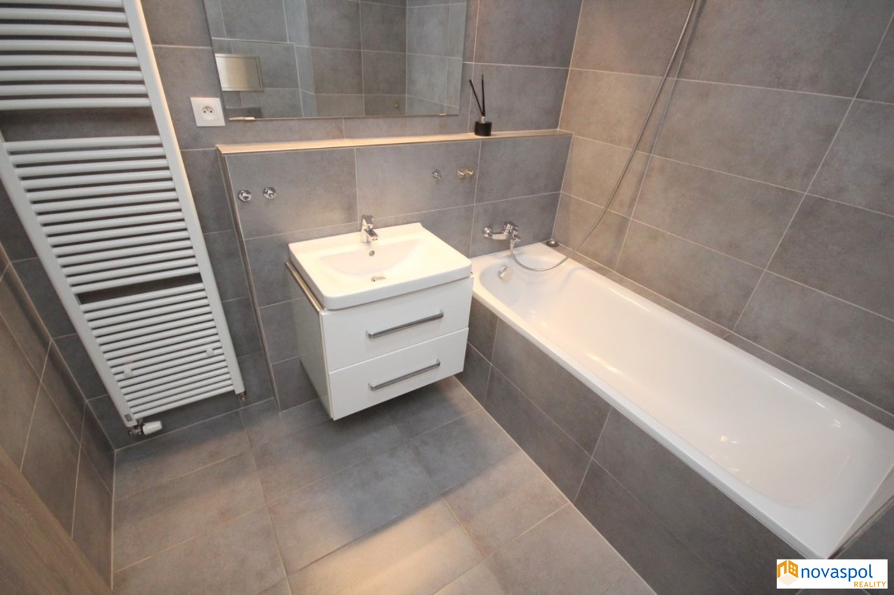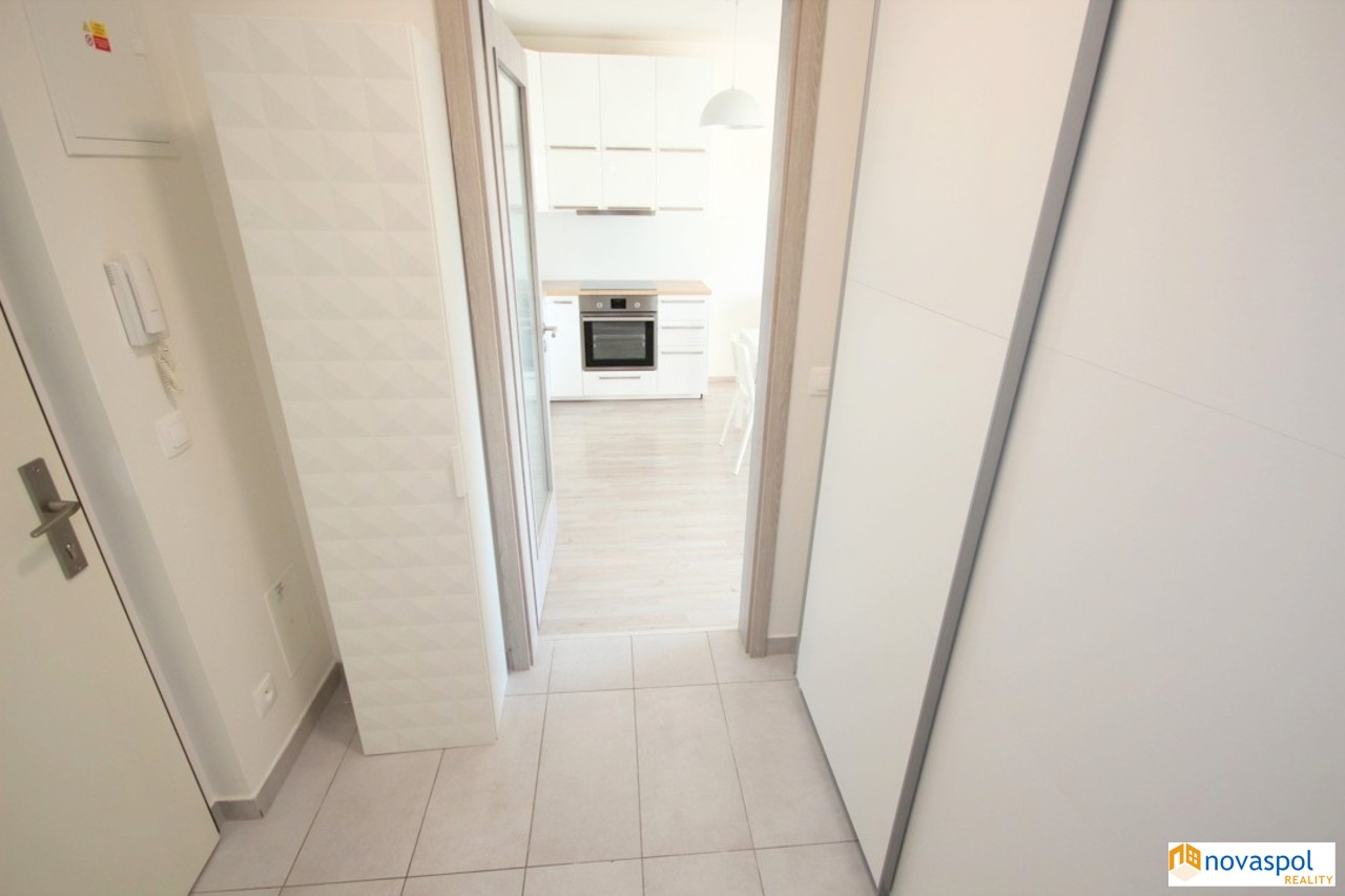 Byt je zánovní, k okamžitému využívání. Kuchyňská linka včetně spotřebičů (sklokeramická deska se čtyřmi plotýnkami, el. trouba, myčka nádobí, lednice s mrazákem, mikrovlnná trouba). Koupelna s vanou + wc, pračka. Zařízeno nábytkem na fotografiích. Západní orientace, předokenní rolety. Bytová jednot...