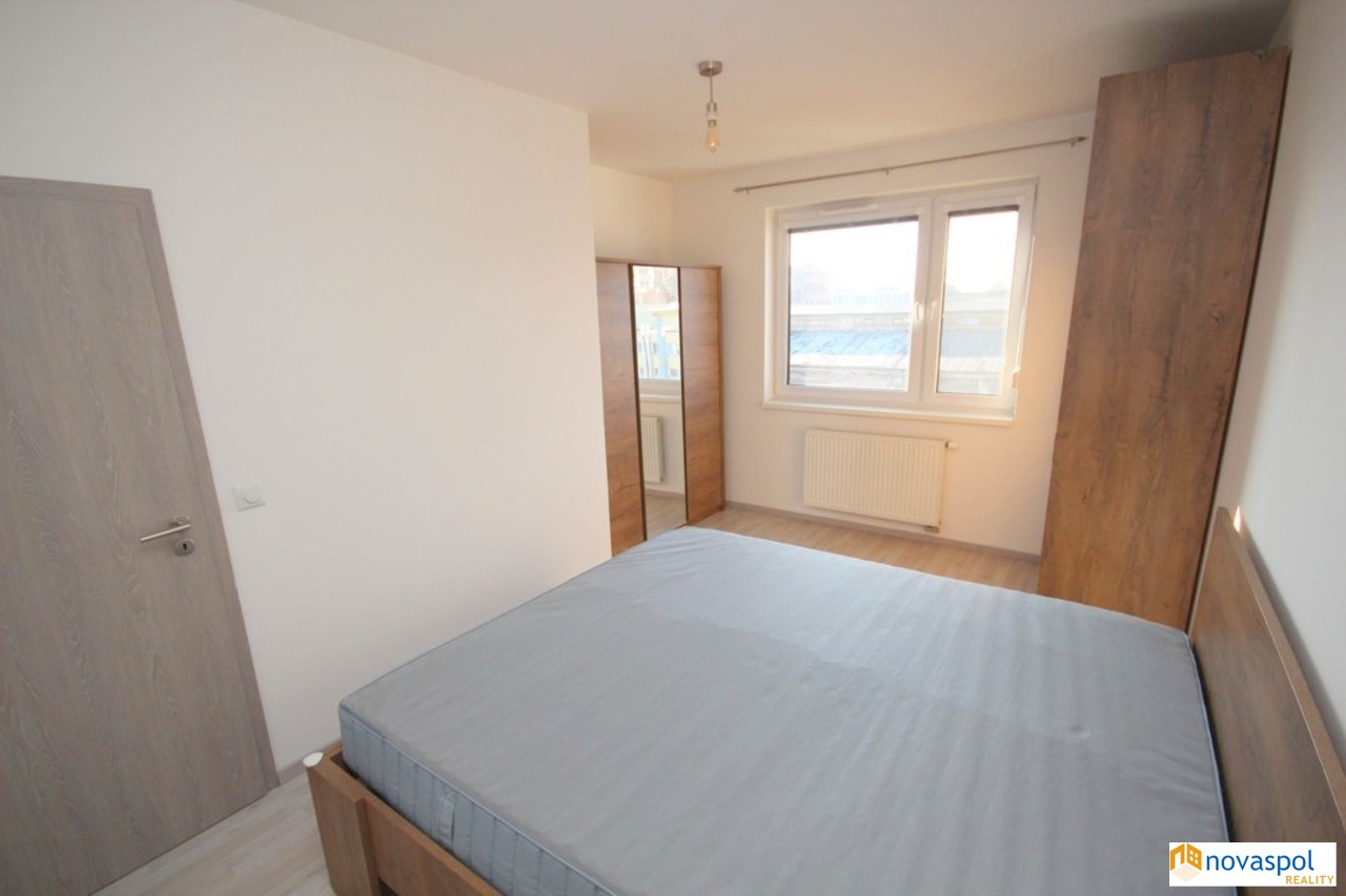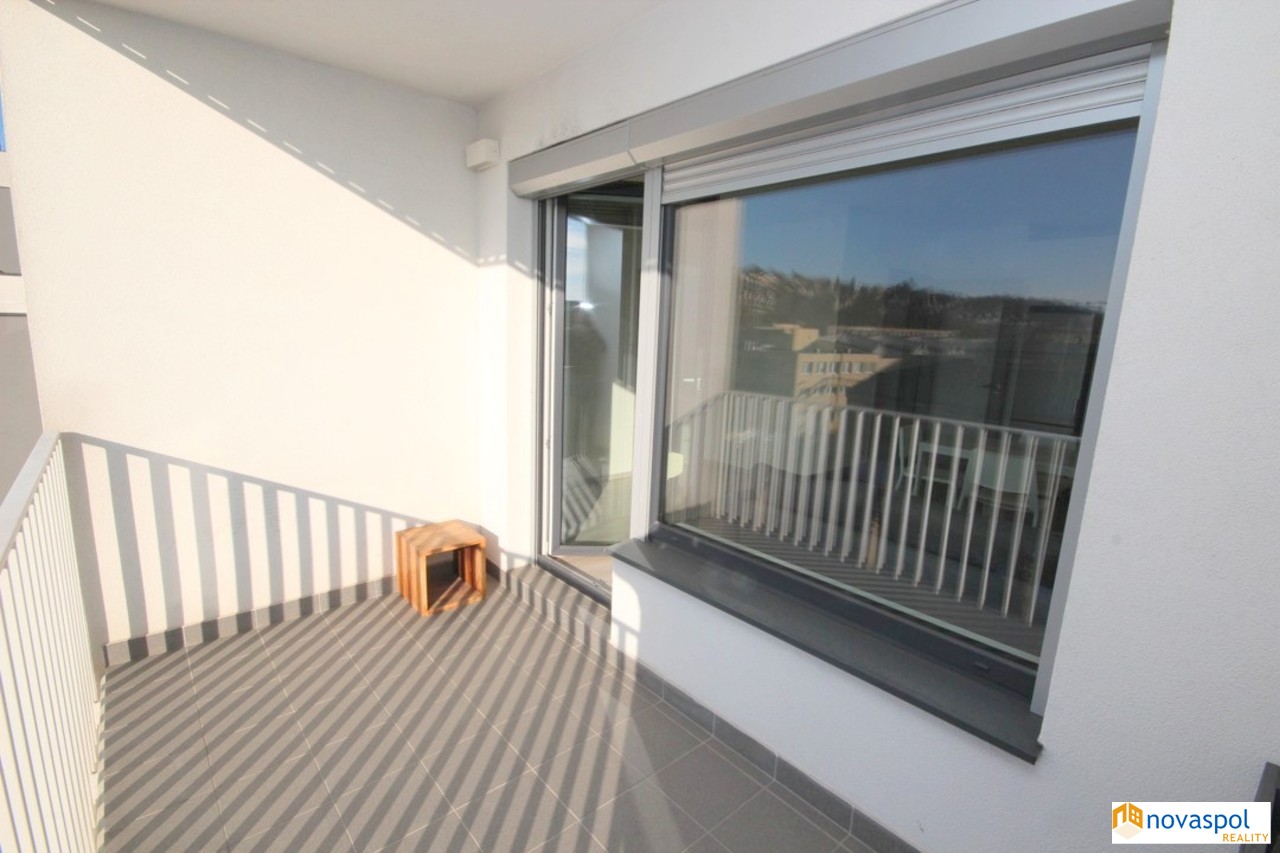 Novostavba, zařízeno: Byt 2+kk s balkonem, sklepní kójí a garážovým stáním, 5. nadzemní podlaží bytového domu v těsné blízkosti metra Kolbenova.